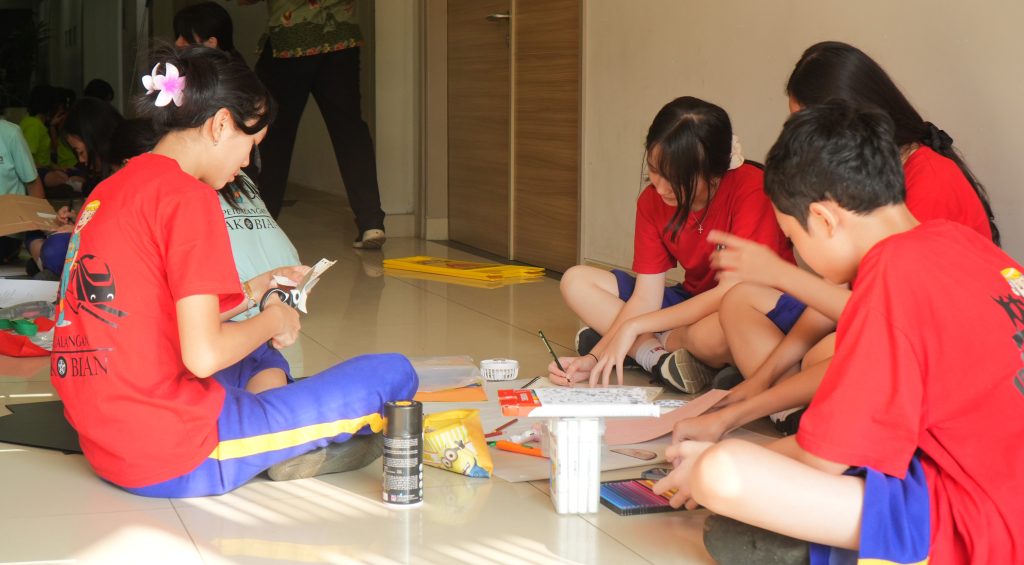 Foto : Antusiasme salah satu kelompok yang sedang mengikuti perlombaan majalah dinding.