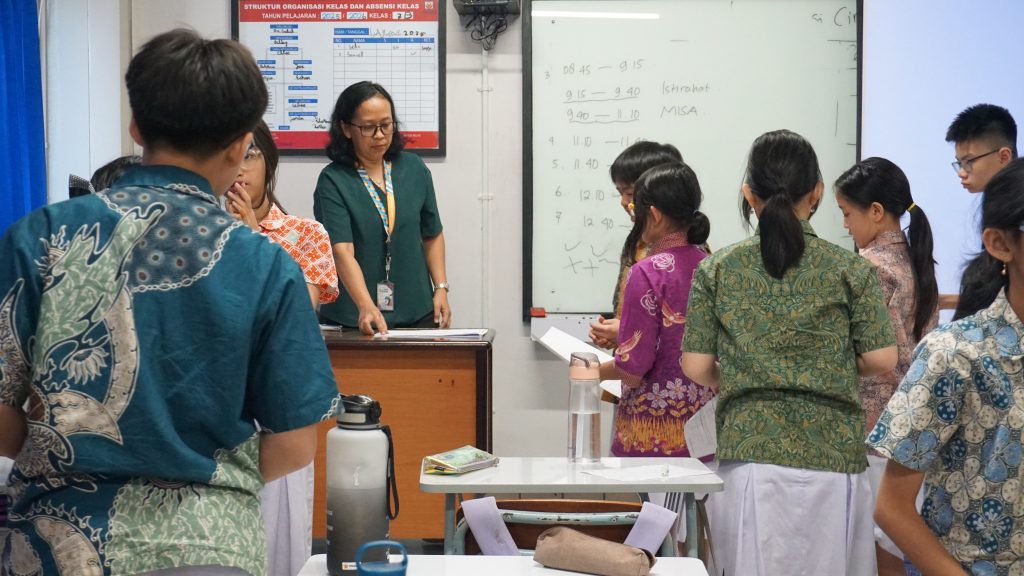 “Jadi saya mencoba mengingatkan kembali. Ini lho caranya. Aaah.. mereka mulai ingat,” ujar Rosa Sari Siswandari, guru matematika kelas 7 SMP Santo Yakobus.
